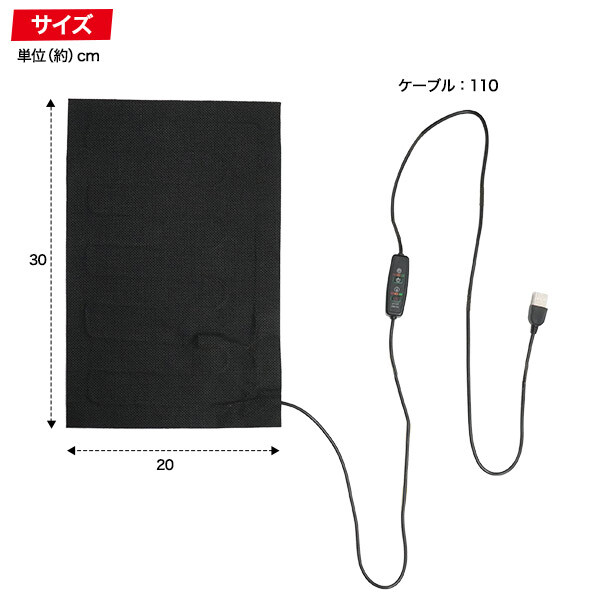 手持ちのウェアの下に入れて USBに繋ぐだけのお手軽防寒! 約35℃のほんのりあったか持続タイプ!